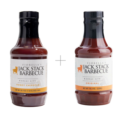 The Sweet & Tangy Sauce – Two Pack delivers the best of both worlds in one set. Our KC Original BBQ Sauce is the classic Kansas City blend of sweet and tart, crafted to bring out the full flavor of Jack Stack’s smoked meats. Paired with our KC Honey Chipotle Sauce — a bold twist of golden honey sweetness and smoky chipotle heat — you’ve got a duo that covers every craving.